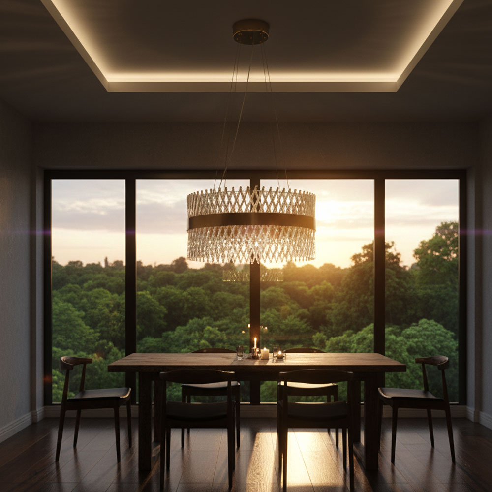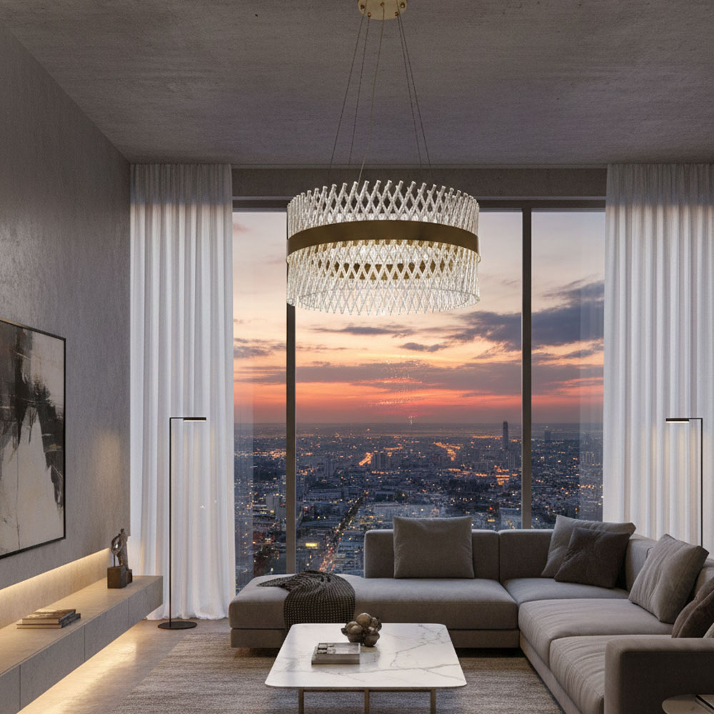 Apportez une touche de luxe et d’élégance à votre intérieur avec ce lustre rond en cristal, sublimé par une bande dorée raffinée. Son design moderne et sophistiqué diffuse une lumière éclatante qui met en valeur chaque espace, que ce soit un salon, une salle à manger ou un hall d’entrée. Fabriqué avec des matériaux de haute qualité, ce lustre allie esthétique, durabilité et performance lumineuse pour créer une ambiance chaleureuse et prestigieuse.