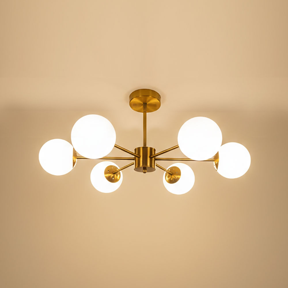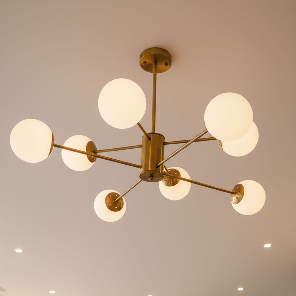 Apportez élégance et modernité à votre intérieur avec ce plafonnier à 8 boules et bras doré. Chaque boule diffuse une lumière douce et agréable, parfaite pour illuminer salons, salles à manger ou espaces contemporains. Compatible avec des ampoules E27, ce plafonnier combine design chic et fonctionnalité, apportant un éclairage harmonieux et raffiné à votre pièce.