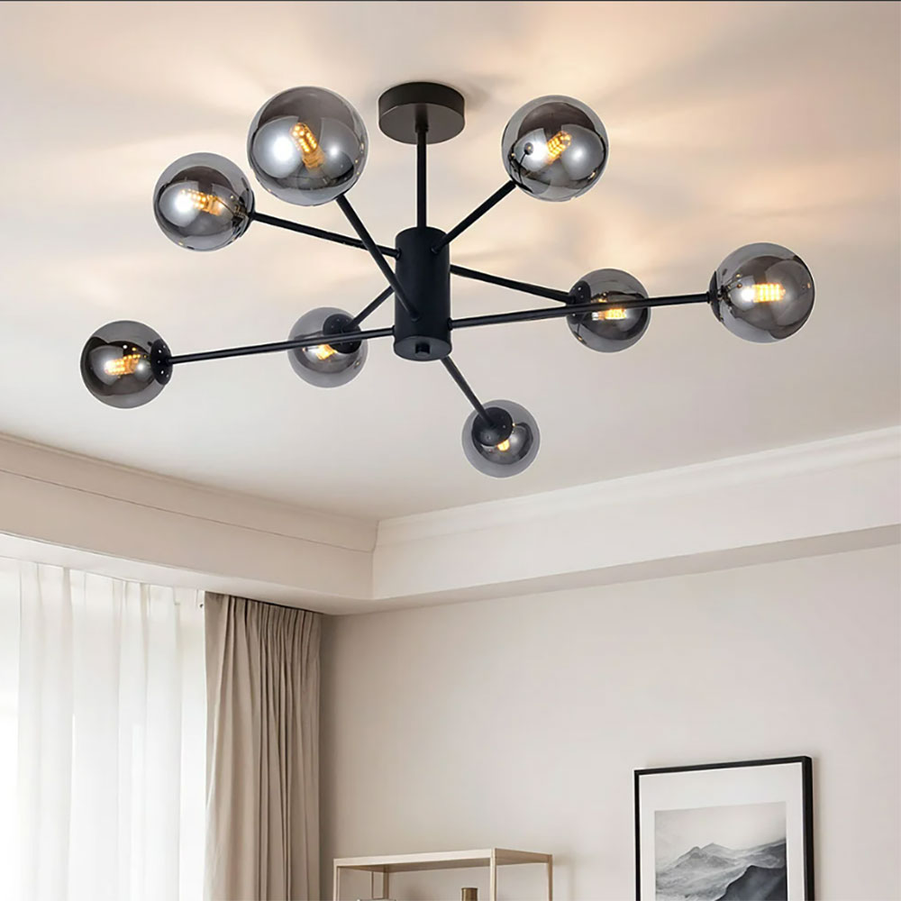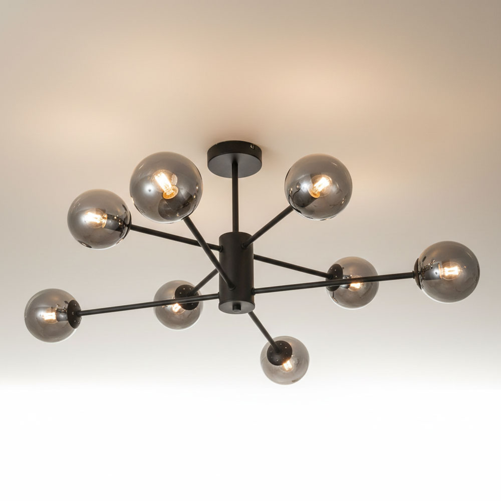 Matériaux : Métal + verre Élégant plafonnier bras noir à 8 boules, idéal pour un éclairage moderne et chaleureux dans votre intérieur.