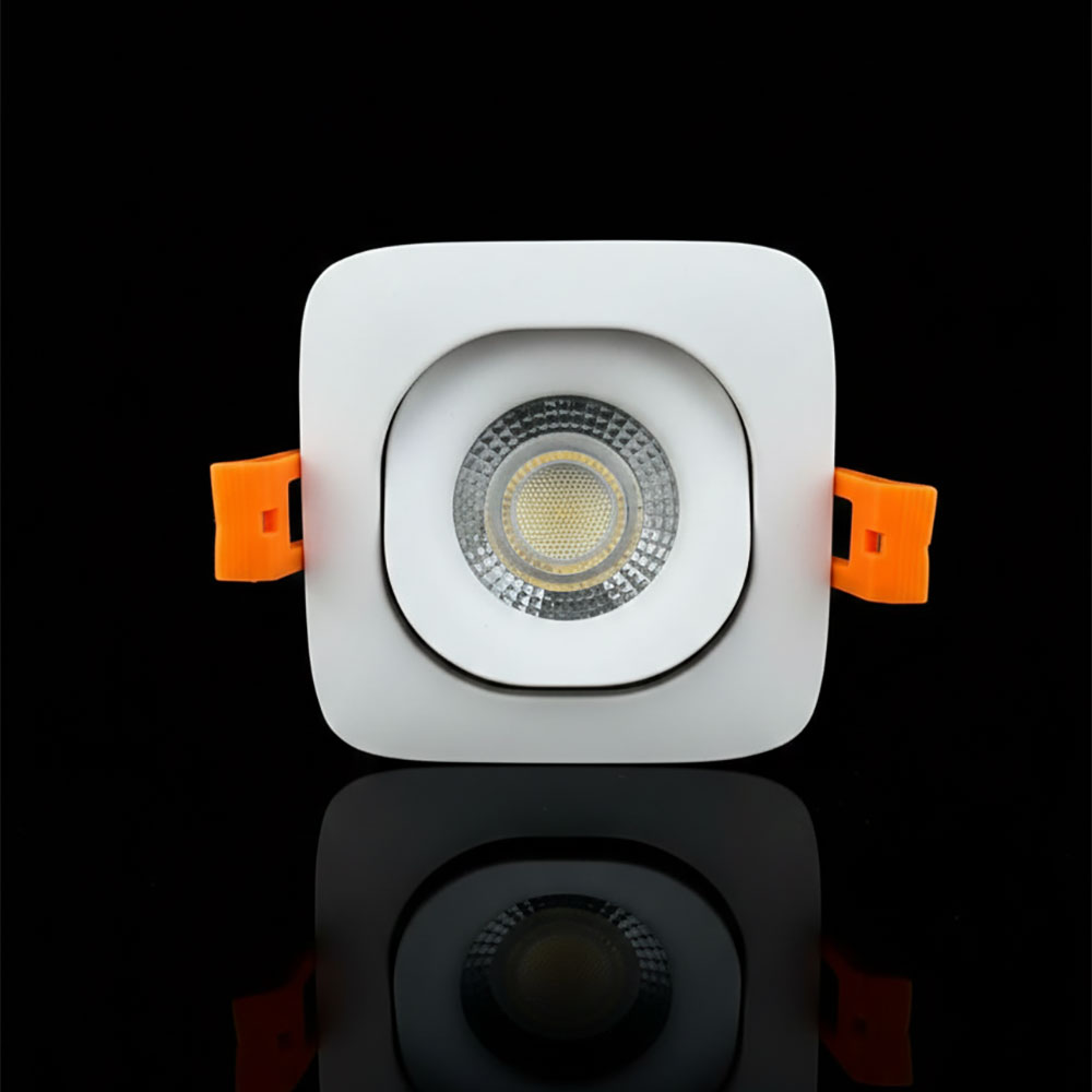 🔹 Forme : Carré avec surface « bombée » ➤ Tête orientable – l’ampoule peut pivoter (gauche/droite, haut/bas) pour orienter précisément la lumière.