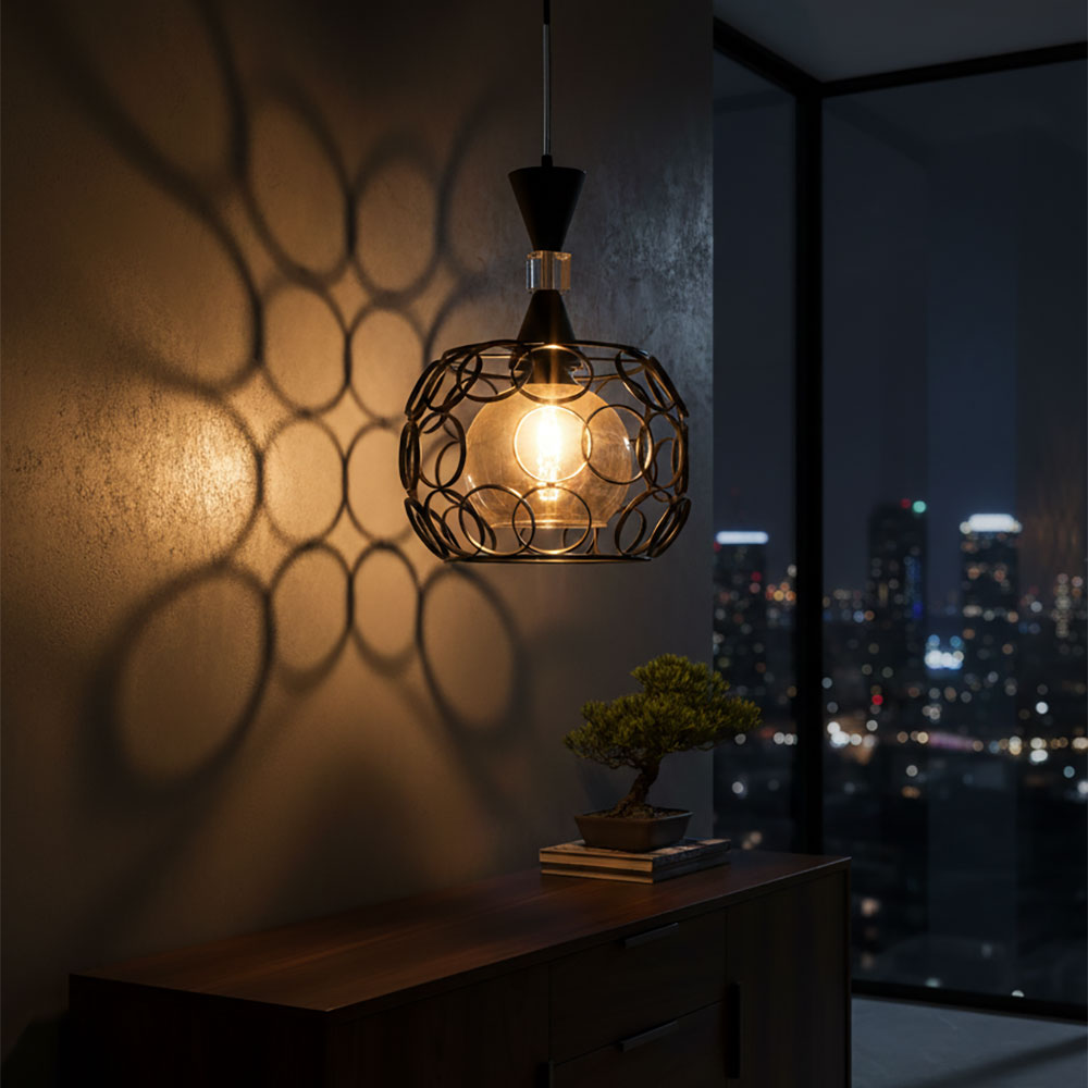 Avec un diamètre de 23 cm, cette suspension trouve sa place facilement au-dessus d’une table, d’un lit ou dans un coin lumineux, tout en apportant un contraste chic et graphique. La finition noire met en valeur la lumière, pour un rendu à la fois intime et design.