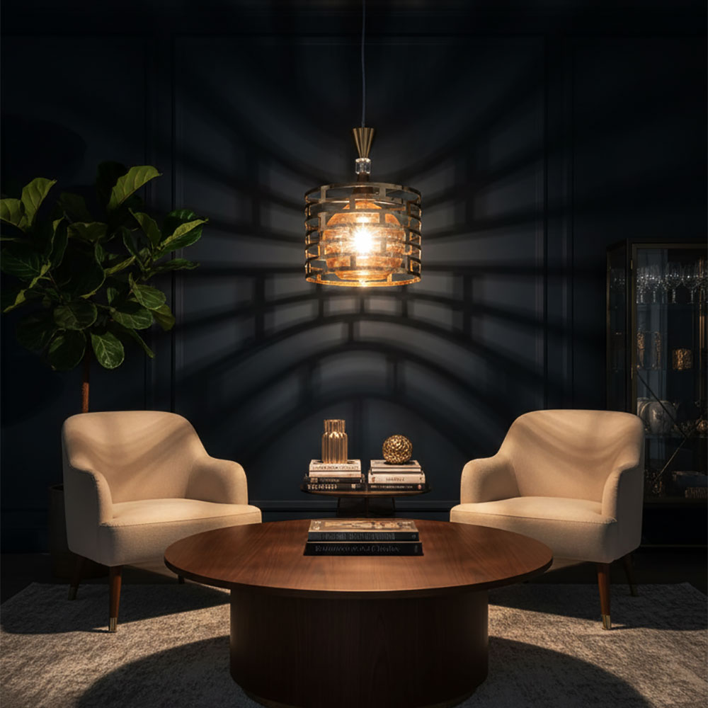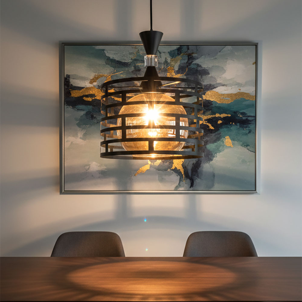 Avec son diamètre de 26 cm, cette suspension s’intègre harmonieusement dans un salon, une salle à manger, une chambre ou un espace professionnel. La finition noire souligne le design avec caractère, tandis que la boule dorée diffuse une lumière chaleureuse et élégante, créant une ambiance à la fois moderne et sophistiquée.